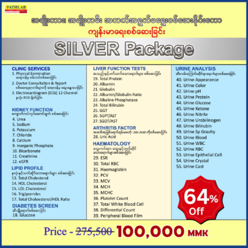 ကျွန်ုပ်တို့သည် ပုဂ္ဂလိကဆေးရုံနှင့် ဆေးခန်းများဆိုင်ရာ ဥပဒေ (PHMC) နှင့် လုပ်ထုံးလုပ်နည်းများအရ Chemical Pathology (ဓာတုဗေဒဆိုင်ရာ ရောဂါဗေဒ)၊ Cytology (ဆဲလ်ဗေဒ)၊ Haematology (သွေးဗေဒ) နှင့် Microbiology (အခြေခံ အဏုကြည့်မှန်ပြောင်းဖြင့် စစ်ဆေးခြင်း) စစ်ဆေးမှုများကို လုပ်ဆောင်ရန် ကျန်းမာရေးဝန်ကြီးဌာန၊ MAAU ထံမှ လိုင်စင်ရရှိထားပါသည်။ ၁၉၉၇ ခုနှစ်မှစတင်၍ ISO 9001-2008 အရည်အသွေးစီမံခန့်ခွဲမှုစနစ်ကို လိုက်နာကျင့်သုံးလျက်ရှိပါသည်။